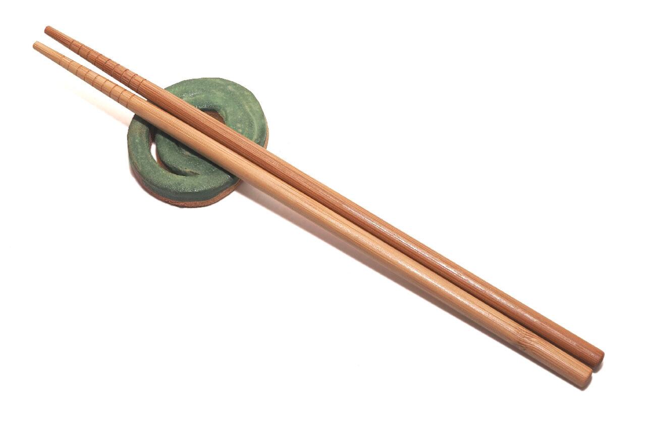 はし置き 赤絵付け 緑 25-6-28