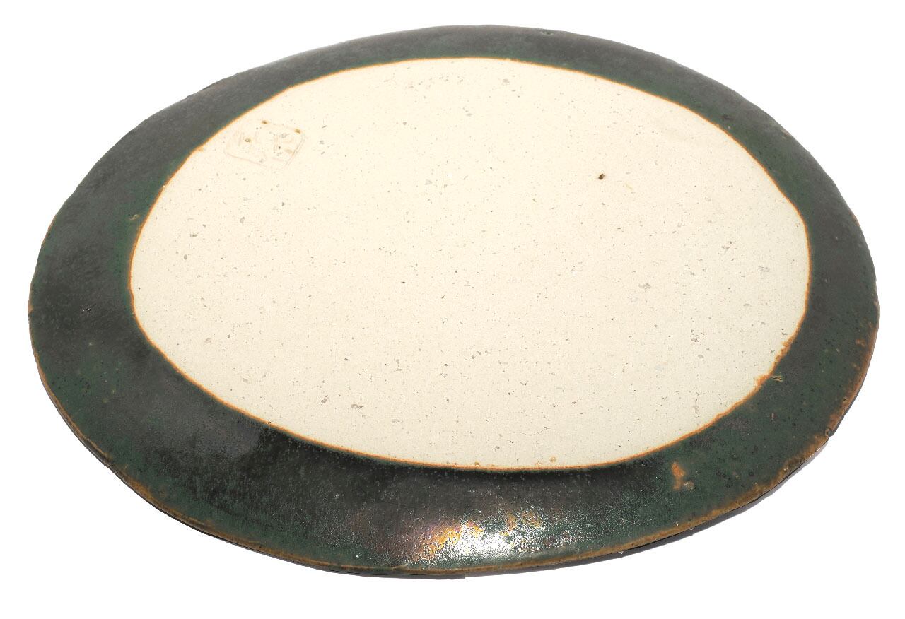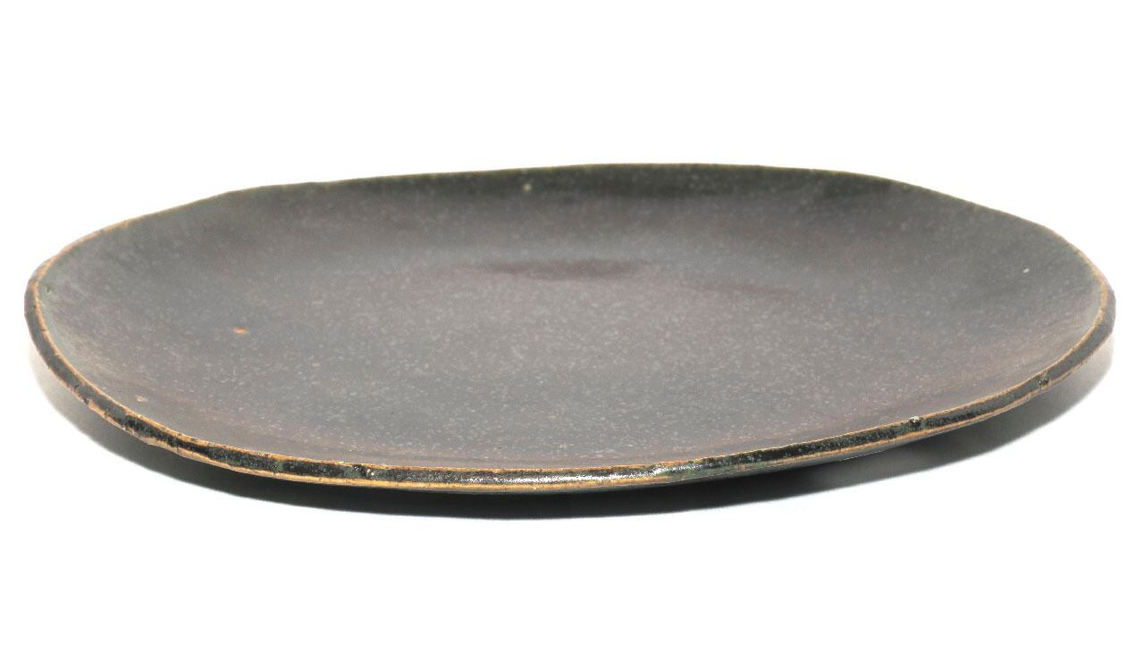織部楕円皿 信楽土 織部釉 26-2-9