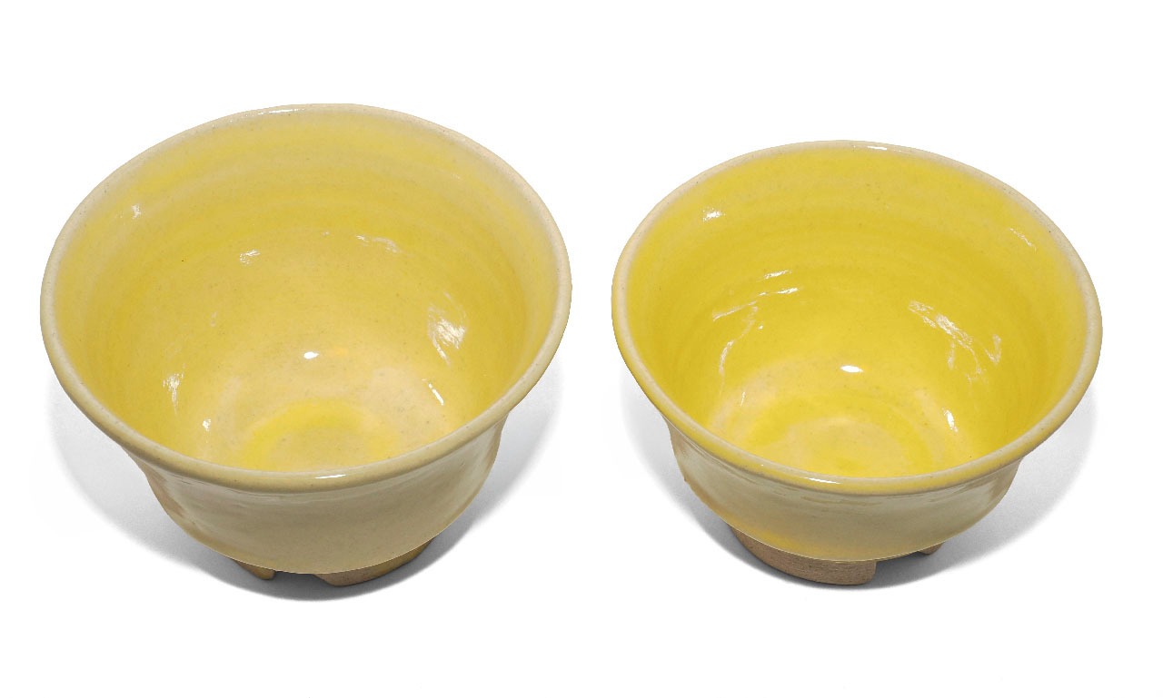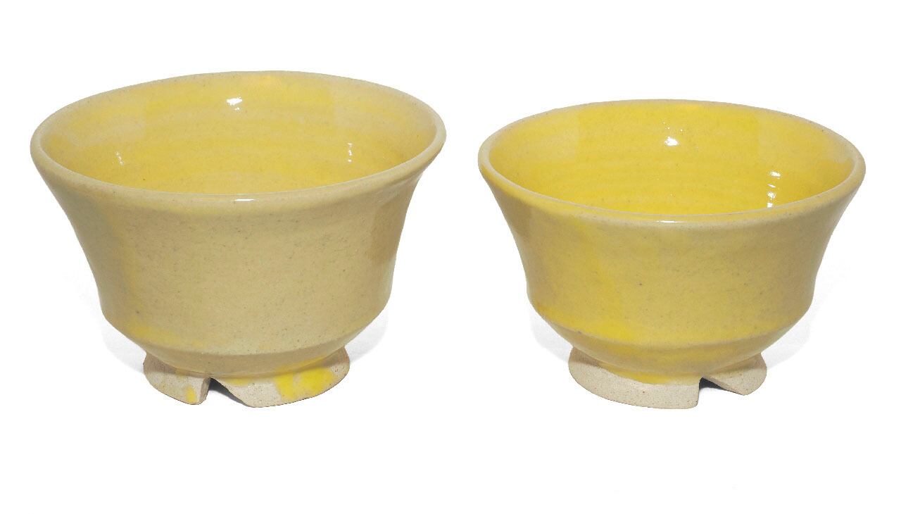 夫婦茶碗 白土・レモン色釉 26-2-23