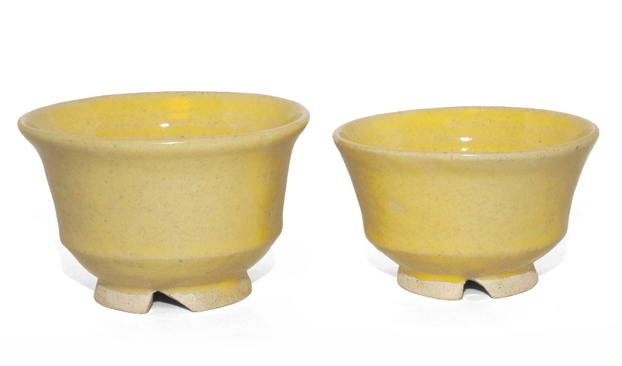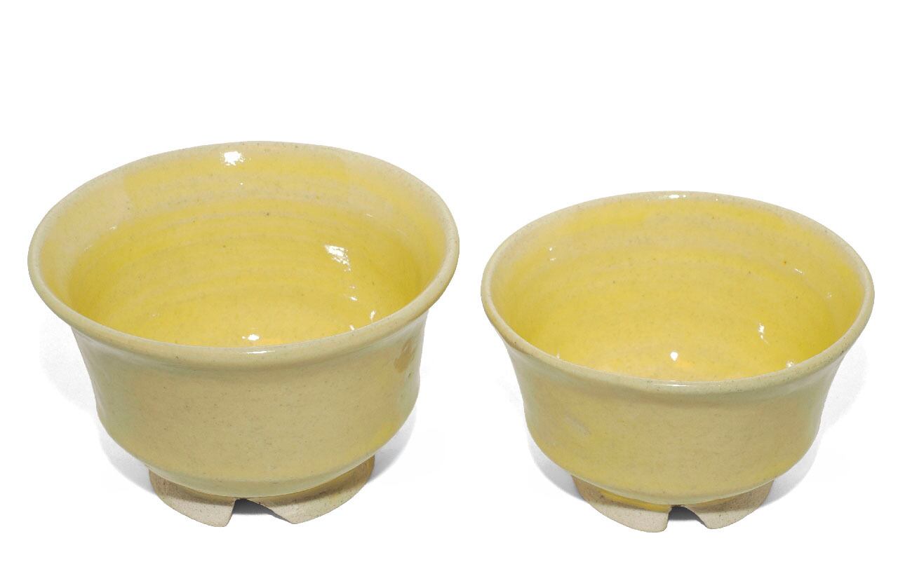 夫婦茶碗 白土・レモン色釉 26-2-24