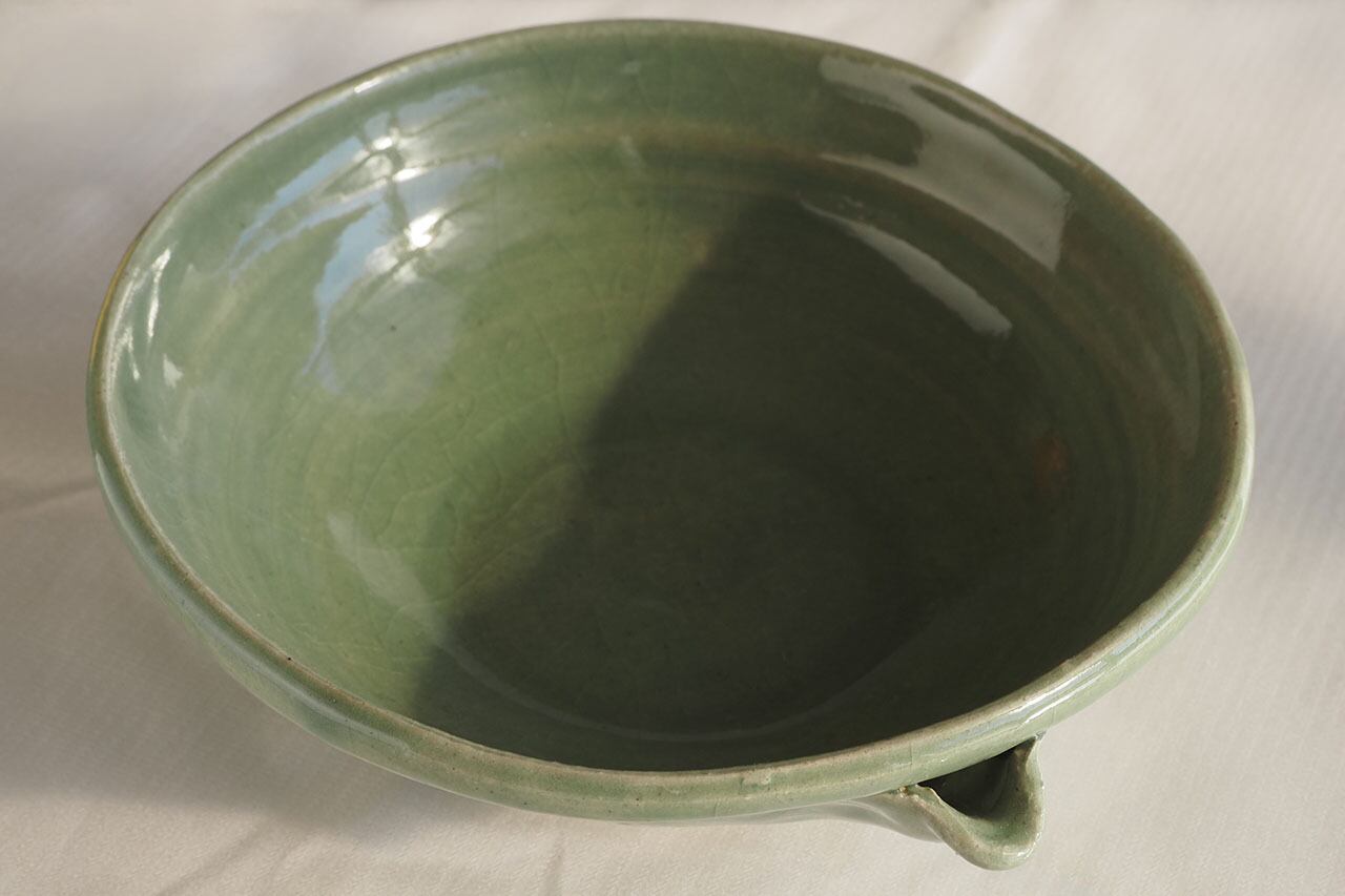 どんな色の食材にもあう砧青磁の中鉢です。