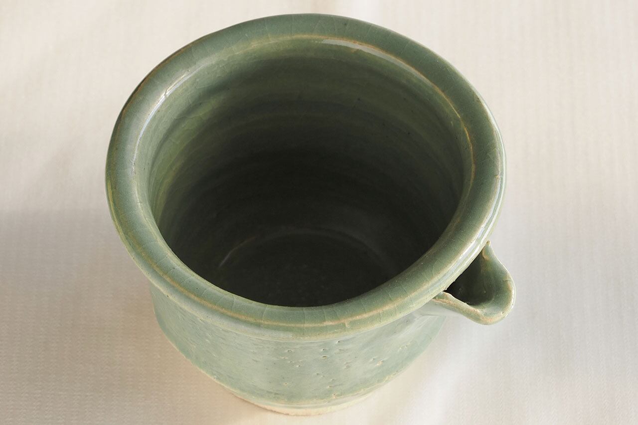 貫入(表面に入る細かいひび)、焼成時に生じるピンホール(小さな穴)、鉄粉(鉄分が焼かれることによって酸化して黒点となる状態)、釉薬のムラなどがあります。